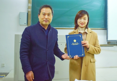 讲座开始前,文学院副院长周生杰代表学院对王婷婷老师的到来表示了热烈的欢迎,并为王婷婷老师颁发了“东吴语文教学讲坛”纪念证书。