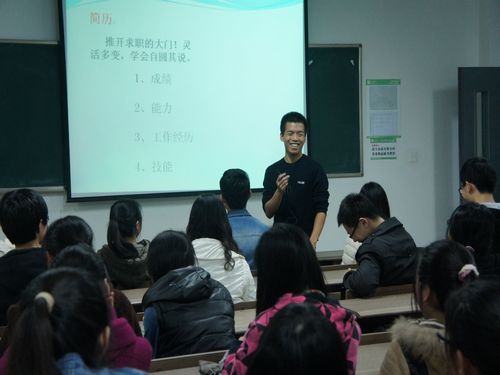 可是,站在岸上学不会游泳,主讲人于是又列举出了一些工薪待遇较好的公司给听众进行参考。中交一公局第二工程有限公司是非常不错的!”黄成江有些激动地说道“它的试用期工资为3000,试用期为三个月,转正后是3800,享有五险一金、年终奖等福利优厚。可惜我在面试的时候表现不太佳被无情地淘汰了,可是在座学弟还是可以把它作为很好的选择的”。紧接着他介绍还有旭辉地产,苏宁云商,苏州银行等。总结下来,这些岗位的共同特点就是有着优厚的福利待遇。值得注意的是,打铁还需自身硬。我们需要各种‘软件’和硬件的有力支持。我们的简历这时应该发挥至关重要的作用――成绩、能力、工作经历、技能都是我们能否获得职位极其重要的因素。值得注意的是,对于我们文学院的学生来说选择总裁办、人事、行政类的工作能较好的发挥我们的专业特长。面试时的各种陷阱也是我们应步步为营的地方,通常面试官会问你‘有无男女朋友?家庭住址?等看似价为私人化的问题其实是想要了解你能否在应聘公司长久待下去。