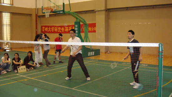 赛前,我院选手们利用空暇时间认真训练,全力备战,不断提高球技,力争在比赛中获得优异成绩。本次比赛以学院为单位进行,共设男子单打、女子单打、男子双打、女子双打、混合双打五个项目,采用五局三胜制(为保证公平,每场比赛必须打满五局),分四个场地同时进行。比赛从早上九点一直持续到下午四点。小组赛中,文学院与实力强劲的医学部、纳米科学技术学院分在同一组,晋级比较困难,但是选手们还是坚持打完了所有比赛,这种顽强拼搏的精神赢得了大家的一致称赞。 首战对阵医学部,双方实力悬殊,但是我院选手丝毫没有退缩,参赛的同学充分发挥自己的实力,打出了自己的水平,为赛场观众们呈现了一场精彩绝伦的比赛。虽然接连丢掉三局比赛,但是文学院女子双打组合葛培/袁静及时调整心态,沉着冷静,点杀、扣杀、网前放小球、劈吊、后杀斜线、追身球,变化无穷,全力以赴,最终以小分2:0绝杀对手,极大地鼓舞了士气。尽管文学院最后以1: 4输掉了首轮比赛,但是选手们坚持不懈的精神是有目共睹的。 在随后进行的比赛中,面对纳米学院的强势进攻,我院选手以不变应万变,见招拆招,整场比赛战况激烈,异彩纷呈。文学院女单选手卢璐轻松赢得第一局比赛,接下来由于失误较多,以两分之差丢掉了第二局。在双方各胜一局后,第三局比分交替上升、十分胶着,但是这一次卢璐并没有给对方机会,连得四分最终拿下了这场比赛,为文学院赢得了宝贵的一分。之后葛培/高雅的女子双打又斩获一分,虽然以大比分3:2负于对手,但是两场比赛的胜利足以证明文学院的实力。 经过激烈的角逐,最终由实力强劲的医学部代表队获得冠军,但是我院队员的出色表现也充分展示出研究生坚强、团结、拼搏的精神。此次羽毛球赛使同学们得以切磋球技、强身健体,他们纷纷表示有机会要多举办这样的活动,以此加强各学院之间的交流,增强同学之间的凝聚力和团队意识。 (刘腾腾)