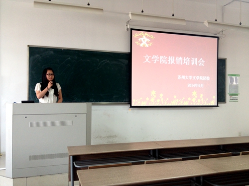 2014年6月12日下午4时20分,由我院团委主办的文学院学生活动经费报销培训会在文综楼3303教室如期开展。本次培训会由我院团校王梦瑜同学主讲,学生会、社联、科协及新闻中心的新任学生干部们都参与了此次活动。