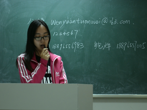 盛超楠同学讲话结束后,在场的团支书纷纷发言,向她提出自己工作中尚不清楚的问题,盛超楠同学也耐心为他们一一解答。随后,团委副书记王颖同学上台,对团委的工作进行补充,着重强调文院团委微信订阅号的相关事务。在讲话中,她要求各班团支部每周向团委微信工作组推荐美文,并向本班同学推广订阅号。会议至此,12、13级团干部相继退场。
