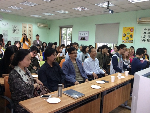 2014年10月17日13:30,苏州大学中国手工艺作坊启动仪式暨《舌尖上的苏州》讲座在苏州大学校本部中国传统文化工作坊隆重举行。出席本仪式的有苏州大学文学院逢成华副院长,苏州大学国际合作交流处留学生管理科朱苏静科长,中国烹饪学会常务理事、江苏省烹饪协会副会长、苏州烹饪协会会长华永根先生,苏州黄天源糕团集团董事长陈锡荣先生,共建单位代表虎丘书院执行院长陈东兴老师,美国加州中医药大学博士生导师怀星教授,国学大师、中医文化专家、苏州中医文化学术论坛筹委会主任刘则安老师,茶道专家、《新泾渭》杂志主编苏文娟老师,苏州大学中国传统文化工作坊之手工艺作坊课程顾问、《现代苏州》杂志社主编韩光浩老师,苏州大学中国传统文化工作坊之手工艺作坊的讲座嘉宾、凤凰传媒学院陶艺教师朱志仁老师,苏州日报责任记者尤薇以及就读于苏州大学的广大中外学生。