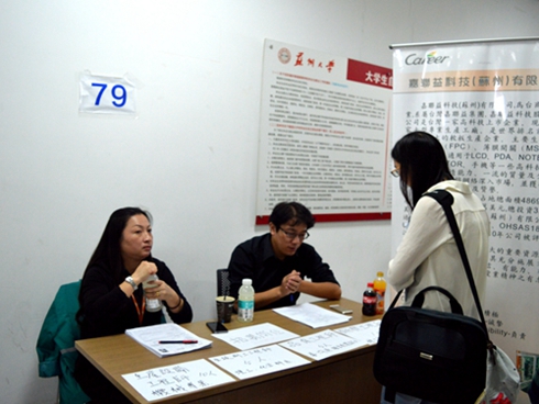 2014年10月24日下午2点,苏州大学2014年董事、校友、直属单位校园专场招聘会在独墅湖校区二期A05幢3楼招聘大厅如期举行。本次招聘会吸引了85家企业以及上百位来自不同学院的应届毕业生参加。现场人潮涌动,气氛热烈。