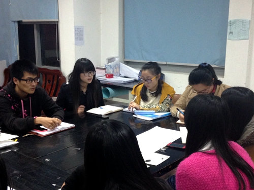 接着,我院团委和医学院团委成员分别就两院的常规工作和职责进行了深入交流。医学部分团校负责人高慧芹详细地阐述了他们即将开展的团校课程,也是医学部分团校的重点活动之一――团校的讲座活动,并向我们展示了他们新闻中心负责制作的精美海报。我院团委成员也和医学部团委分享了我院的特色活动――无手机课堂活动,对无手机课堂的开展情况作了重点的介绍。文学院分团校秘书长盛超楠、鲍烨和医学部实践部部长王梦悦、综合办部长葛隽以及部门干事针对团日活动、团校课题、团员推优和青马工程等常规活动交换意见和建议,取长补短,一些主题类似的活动激起了思想火花的碰撞,一些新颖的特色活动则引起了双方的共同兴趣。在两院团委成员的深入交流中,双方都加深了相互间的认识,对两院团委的专业差异、部门特点和活动特色有了深入的了解。