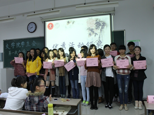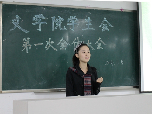 2014年11月5日晚上20:00,苏州大学文学院第一次全体大会在文综楼1002幢2205举行。会议还未开始,学生会成员陆续进场,在学生会干部的指引下分部门各自就坐。