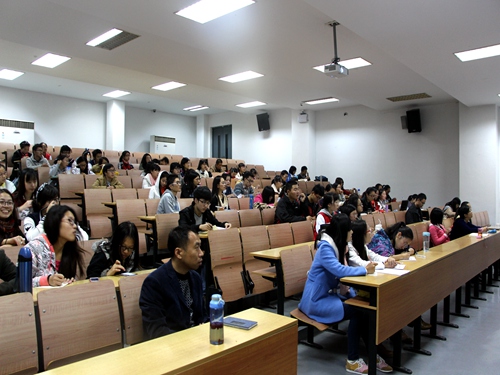 2014年11月7日晚六点半,由苏州大学文学院学生科技协会主办的吴门雅韵系列讲座在文综楼1001- 1101如期举行。本次讲座有幸请到了本届鲁迅文学奖文学理论评论奖得主同时也是苏大教授的鲁枢元老师。他的演讲主题是“东坡与刚峰:兼谈精神气质与生态人格的养护”。在主持人褚著对鲁老师做了简短介绍后,本次讲座在同学们热烈的掌声中正式开始。