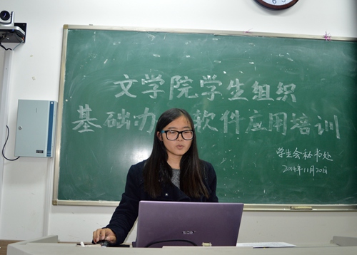 11月20日晚8点半,文学院学生组织基础办公软件应用培训在轻松愉悦的氛围中开始了。刚下晚自习的同学们从寝室带来电脑,准备开始学习在学生工作和学习中都常用的制作文档、幻灯片等技能。