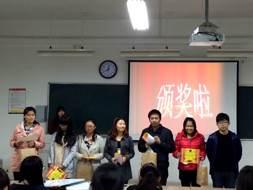 最后支持人宣布“我与诺贝尔文学奖文学知识竞赛”初赛结束,嘉宾、选手及工作人员进行合影留念。之后,弄潮文学社社长吉文丹对这次活动进行了总结,各个干事都分享了自己的活动心得。社联王斌主席在肯定这次活动的成功举办后,也提出了很多宝贵的意见。他鼓励14级新生要不断在活动中得到锻炼,并对弄潮文学社今后的发展寄予了期望。