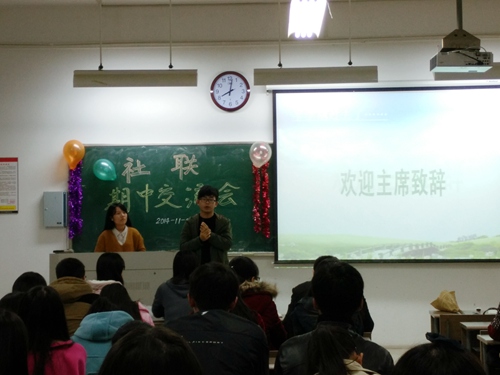 2014年11月27日晚上7点50分,今天是西方的感恩节,同时文学院社联期中交流会在文综楼1003-3206按时举行。