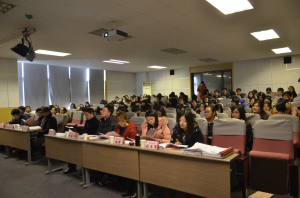 2014年12月24日下午14时,我院2013―2014学年“优良学风班”评比大会在文综楼5339演播厅隆重举行。出席本次大会的嘉宾评审有文学院党委书记王六一、副院长李勇、校督导陈桂声教授、教务秘书王台生、学生工作办公室主任纪金平、团委书记胡萱、团委副书记赵曜、学生代表杨珂、张亚男。此外,我院各年级各班干部、班级代表也参加了此次大会。