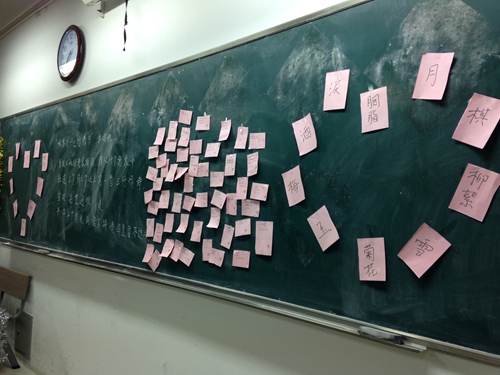 2203教室是“美人吟(联诗对句)”的游戏场所,参加游戏的同学都信心满满,面对着《红楼梦》《西厢记》以及其他的经典中的名章名句,他们基本都能很流利地对出正确答案,引起其他等待同学地赞叹;当然有些同学不能一下反应过来,直呼太难,同学们直言“基础知识还是不扎实。”小小的教室里充满了欢声笑语。而在2204教室却又是另一幅景象了,同学们尽情地展示着自己的才情,根据工作人员出的题目书写三行情诗,工作人员也将大家的佳作贴在了黑板上,以此留作纪念。在2205教室,参加“纵妙手(巧解九连环)”游戏的同学都眉头紧锁。虽然工作人员降低了九连环的难度,但还有限定时间,这对同学们可是不小的挑战。
