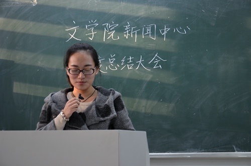 首先,文学院新闻中心主任徐文静发表了讲话,大概总结了本学期文学院新闻中心整体的工作内容,评价了大概的工作情况,总结了一些成功的经验,指出了一些需要加以改进的不足,并对新闻中心下一年度的工作进行了展望,对新闻中心2014级的各位新干事寄予了厚望。