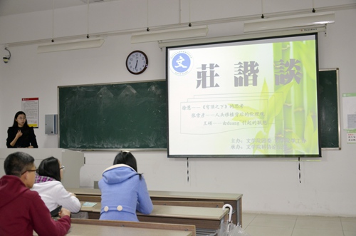 3月22日18:30,新学期首届庄谐谈在文综楼2204教室举行。此次活动由文学院团委、文学院学工办主办,文学院科协论坛部承办。在这里大家一起聊了聊“duang”,交流了《穹顶之下》的思考,还探讨了“人头移植”背后的伦理观。同学们带着观点来,发现了思想的闪光。