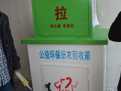 约半个小时后,苏州市衣加衣公益组织送来了公益环保旧衣回收箱,放置在了五六食堂。并且把同学们捐赠的衣物都带回了公司,准备下一步寄往山区,给孩子们送去温暖。