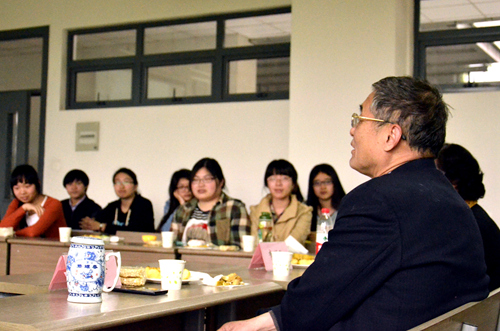 活动主办方邀请来了苏州大学极受同学们欢迎的两位退休老教师王家伦老师和李明敏老师,以茶话会这一种轻松的形式来和同学们进行交流。