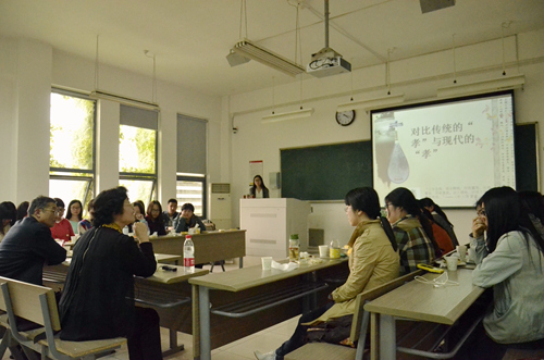 2015年4月24日下午3点,由苏州大学文学院团委、苏州大学文学院关心下一代工作委员会共同主办,苏州大学文学院学生会承办的苏州大学读书节系列活动之“青春与夕阳作伴――书香里共品百味人生”活动在文综楼4205如期举行。
