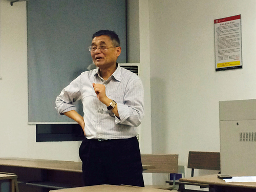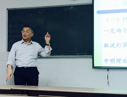 本次讲座,王家伦教授依然延续上一场讲座的风格,以丰厚的实际说课、授课经验为基础,语言幽默生动,条理清晰又穿插以各种实例。在了解了上一场讲座的趋向艺术化的教师口语之后,王家伦向大家介绍更为实用的“说课与微型授课”经验。他首先分别介绍了什么是说课和微型授课,点明了说课的场合、叙说打算和理由,在微型授课方面,王家伦教授直接将其归纳为:面对评委、直接授课、自说自话。他详细介绍了说课、授课、微型授课三者的不同与相互联系之处,以生动形象的比喻将三者的区别与联系讲得浅显易懂。在展开叙述说课的内容上,王家伦教授重点阐述了说课的两个程序:常见式和演绎式。这其中既有说课时普遍采用的方法也有他自己独创的方法,都是经历了反复的实践所得到的,并且毫无保留地传授给在座的同学们。演示文稿上每一点都是以简洁明了的短语的形式出现,经王教授的讲解补充,同学们收获的内容很是丰富。