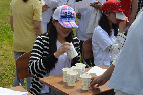 一点三十分,比赛正式开始。第一个环节是“翻杯子”大战。每支队伍需派出一人用手指完成两个杯子的成功翻转,用时最短的十六支队伍进入第二环节。比赛开始后不久,各个小队的战况就已然产生了差异。有的小队顺利地完成了任务,而有的小队则是竭尽全力也不见成效。十五分钟后,第一环节比赛结束,九支用时较长的队伍遗憾地被淘汰了。