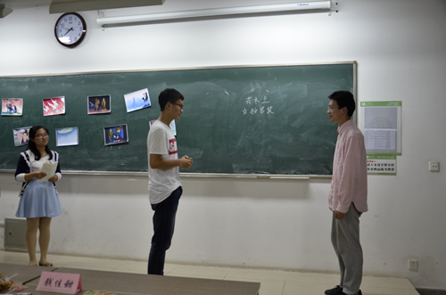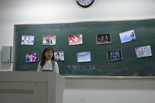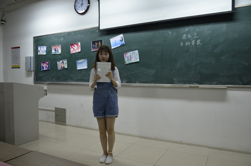 二十分钟的准备时间过去,参赛选手们按照抽签选出的次序上台说课。选手们在十五分钟内根据给出的与绘本故事相关的图片进行讲演,几位选手基本上都根据故事发展情节,将十张图片依次讲解,绘声绘色地讲述了花木兰替父从军的故事。其中三号选手则不然,他别出心裁地选择了其中比较有特色的图片来导入课程,从而吸引学生们的注意,更能引人入胜。此次活动注重参赛者的临场应变能力,在选手们的说课过程中,穿插出现受教儿童的临时表现能力,如插话、传纸条、吃东西等等。参赛的选手都各自有一套解决方法,二号同学在此项中表现较为突出,她开了个小小的玩笑,不仅提醒了受教儿童,而且使课堂气氛不至于太过严肃尴尬。