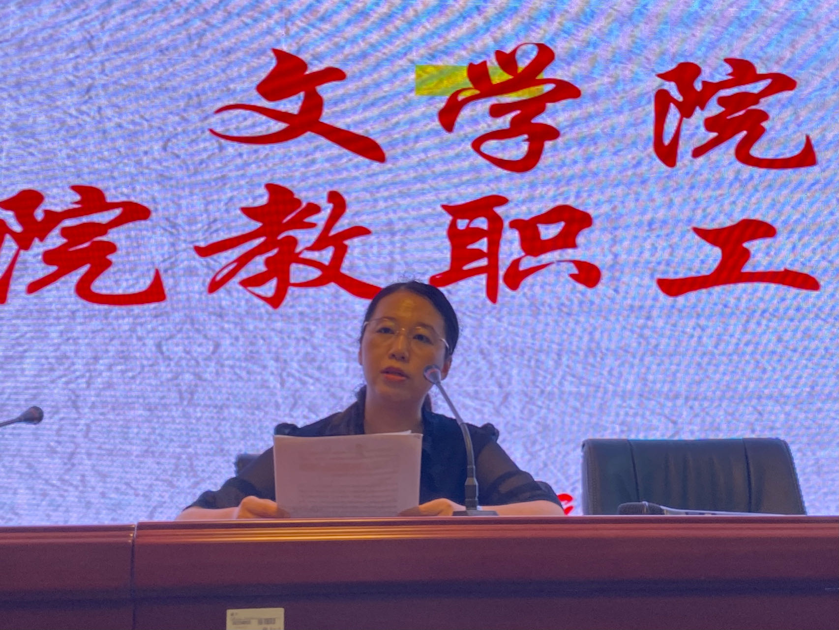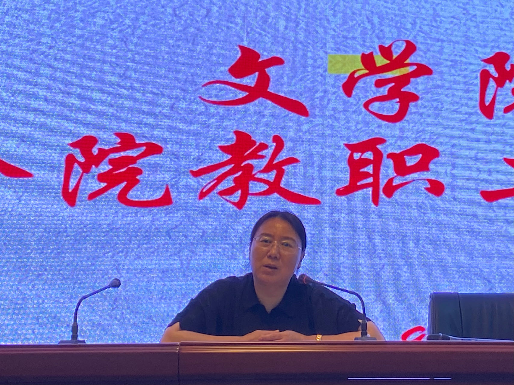 会上,宋清华书记先向全院教职工传达学习“全校干部大会、安全稳定工作和主题教育总结大会”三个重要会议精神。她用三个关键词“安全稳定”、“发展是硬道理”和“以师生为中心”作了全面传达学习。她强调:安全稳定是压倒一切的大事,师生的安全对学院来说是第一位的,要多关心和留意师生的学习、工作和生活,后疫情时代的影响依然存在,师生要多沟通交流;其次是要高度重视师德师风建设,她和大家共同学习了教育部公示的有关违反师德师风的案例,强调教师要进一步加强自身素养和能力建设,坚持立德树人,做好教书育人工作;第二个关键词“发展是硬道理”。文学院发展到今天,取得的一系列成绩,这背后凝聚了一代代文院人的心血和艰苦付出,面临高质量发展、双一流建设的要求,发展的问题也比较突出,需要群策群力、凝聚大家智慧来谋划和具体落实;第三个关键词是“以师生为中心”。宋清华强调人才培养是我们的生命线,要不断提高自己的能力和水平,教育好培养好发展好学生,要善待学生。教师面临的教学科研任务繁重,学院也要多关心每一位教职工的身心健康和职业发展,不断提高教工的幸福感和成就感,特别是要进一步重视青年教工的发展,挖掘潜力激发活力帮助青年教师尽快成长!