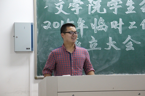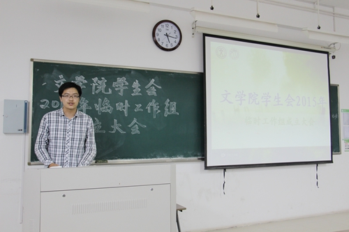 6月22日晚5:00,文学院学生会在文综楼3203教室举行了2015年临时工作组成立大会,本次大会由学生会主席刘杨主持。团委书记胡萱老师参加了此次大会,大会开始后,胡萱老师首先发言。她肯定了学生会主席团、部长以及干事们一年来的辛勤付出,他们在每次活动和日常工作中的努力都是有目共睹的,也希望留任的同学们能够更加珍惜这些共同奋斗的时光。
