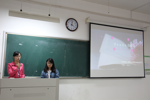 最后,校党校的戚悦和李月兰两位同学对党校Reado读书会的相关事宜进行了介绍。她们从读书会的名称由来、发展历程以及历届活动的回顾三个方面向大家全面展示了读书会的具体信息,并鼓励大家积极地参与到读书会的活动中,体会阅读的乐趣。