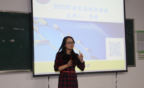 接下来,李婷老师向大家讲述了现今社会的就业现状,由此说明了职业规划的重要性和必要性。据李婷老师讲述,我们要想将来能够在社会上有一席之地,首先要做的就是自我定位,通过招聘网站了解市场对人才的需求以及个人的兴趣爱好,给自己一个准确的定位。定位好后要及时做好规划,在大学期间要学些什么知识或是技能,应该在什么时候获得一些什么证书,都要进行规划。当然,最重要的是要付诸行动。充分利用课余时间,不断地锻炼自己,提高专业知识技能,培养高的情商。只有经过实质性的锻炼,我们才能真正成为一个社会所需要的、能够融入社会之中的人才。