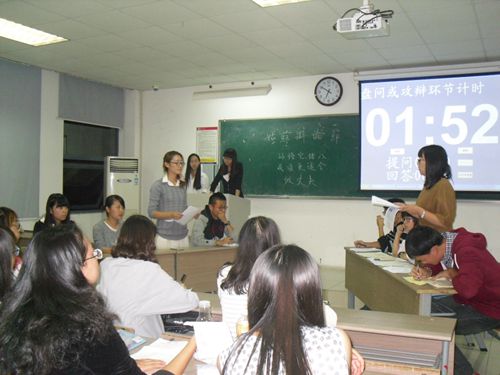 第二阶段是正反方驳论环节。正方二辩尖锐地指出对方的四点漏洞,认为对方以偏概全,以原著中23回为例,最后以“在场的女生希望找三妻四妾的丈夫吗?”的问题结束发言。反方二辩迅速组织语言反驳,对《西游记》原著情节如数家珍,扳回一城。接着由双方的三辩对二辩质询,双方辩手兵来将挡、争锋相对。到了质询小结,反方三辩首先指出正方忽略孙悟空嗜血滥杀、不恤众生和功利,并以疯狂英语的李阳为例说明能力强不等于能做好丈夫。正方三辩则再次强调猪八戒假温柔、不专一等缺点,将比赛的悬念留到了自由辩论的环节。