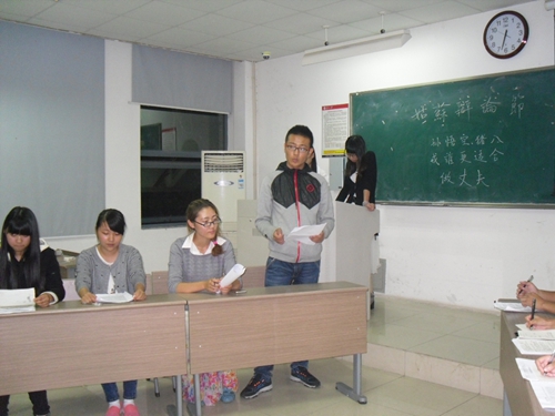 10月16日晚6:30,为锻炼新生思辩能力、提供口才展示平台,文学院竞智思辩社在文综楼3105教室举办了以“孙悟空、猪八戒谁更适合做丈夫”为辩题的“姑苏辩论节”2015级新生辩论赛初赛,正方所持观点为孙悟空更适合做丈夫,反方则认为猪八戒更适合做丈夫。此次辩论赛邀请到了材化部弦辩社社长杨颖,社会学院辩论队单梦梦,医学部杏林社姜铭鑫。