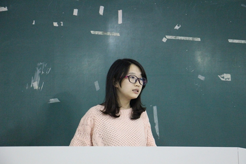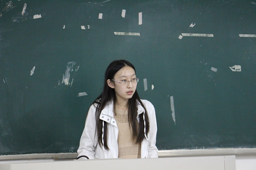 第二个上场的是弄潮文学社,申报活动是“人在画中游,诗词口中秀”系列活动,由社长刘雨涵主讲。她首先就活动流程设计、活动意义及活动预算做了简单介绍,之后在答辩环节,评委们就活动流程提出来“参与者不想参加竞赛性质更浓的第二轮比赛”的问题,刘雨涵社长表示他们将采取在第二轮返还第一轮的门票费这样吸引人的方式,以及邀请其他文学社帮忙以加大宣传力度的方式。