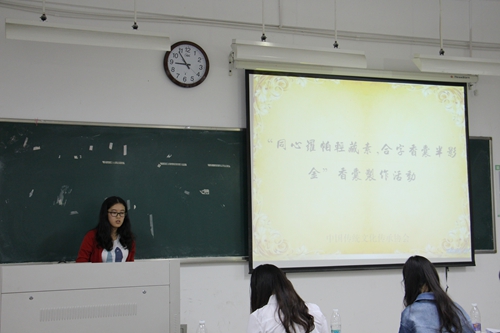 此次活动在监管部干事毛晓凡同学的主持下开始了。主持人首先介绍了到场的嘉宾评委,她们依次是文学院社联主席江涵婷同学、副主席吕云同学以及副主席金梦蝶同学。