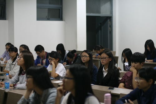听完了公文写作培训,团委副书记金韫之紧接着开始了社交礼仪培训。她提出礼仪的核心是尊重,这受到同学们的认可。金韫之同学以四川话中的个别词汇为例子,告诉大家社交中使用普通话的重要性,幽默生动,让大家开怀一笑。然后,她把本次社交礼仪培训划分为四大板块:座位礼仪,电话礼仪,娱乐利益和仪表服饰礼仪。在讲述电话礼仪环节中,金韫之以她切身感受和亲身经历告诉同学们及时接电话回短信在日常社交中是必不可少的礼貌,无论是对同学还是对师长。在谈到仪表服饰礼仪时,金韫之不仅列出身边实例,还叮嘱同学们要尽可能地去换位思考。最后她总结了一句话:“教养体现细节,细节体现素质”,同学们频频鼓掌,气氛热烈。