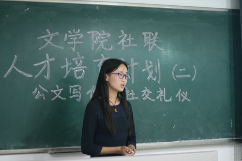 10月19日晚7:30,文学院社联于文综楼3202召开了“清渠问源,博海拾贝”系列人才培育计划第二讲之“公文写作与社交礼仪”活动。