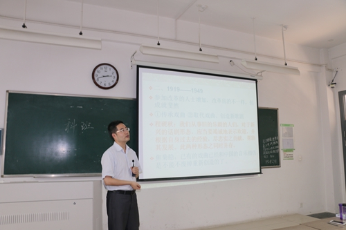 在同学们热烈的掌声中,艾立中老师走上了讲台,他首先用轻快的语调向来听讲座的同学们表达了谢意,接着用最近在苏州举办的昆剧艺术节引出了今日的话题:20世纪戏曲改革的艰难历程。艾立中老师大致说明了他此次讲座的三个部分,并且解释了他将戏曲改革作为此次讲座主题的原因:弥补大学教学中被忽视的一块内容,引导同学们认识传统文化在当代以及将来的传承难度以及解决办法。