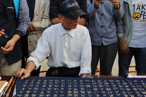首先进行的是窗花剪纸、写对联、书法交流、DIY书签等活动。志愿者们为写对联活动准备了一些应时应景的上联,由现场的居民与志愿者对出下联。大家各展其才,对出了不少优秀的对联作品并进行了展示。在写对联与书法交流活动中,扬帆学社和云天书画社请来了一位在书法上颇有造诣的老先生。老先生在现场妙笔生花,为大家写了一副对联和一首诗,并向大家展示了两幅个人作品,其中一幅为《兰亭集序》。老先生的字令大家赞叹不已,因此大家纷纷向老先生请求题字书签。书法活动还吸引来一位先生,并同样获得了这位先生的墨宝一幅。据悉,这位先生曾参加过全国书法大赛,并在大赛中获得了优异的名次。此外,参加活动的志愿者们也同样展示了各自的书法。窗花剪纸活动以其趣味性和可操作性吸引了许多老人。志愿者与老人们互相分享各自的剪纸技巧,在活动的短短几小时内剪出了不少精美的窗花。老人们拿着手中的剪纸,脸上露出灿烂而真挚的笑容。