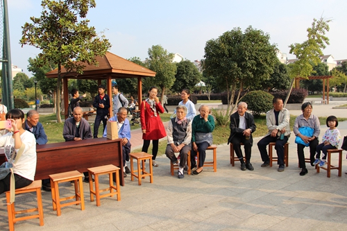活动在陆云苏与李耀多两位志愿者合唱的一首《心雨》中温馨开场。接下来,主持人闫丽新同学对活动流程做了简单介绍,志愿者们则以饱满的热情带动现场的居民参与到了活动中来。