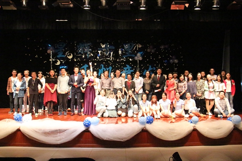 晚会开始后,由文学院社联推出的五乐天乐队表演了精彩的歌曲串烧,现场的气氛迅速升温,也拉开了本场晚会的序幕。随后主持人介绍了出席此次晚会的嘉宾:文学院党委书记逢成华,文学院副院长、唐文治书院常务副院长季进,文学院党委副书记、副院长张健,文学院学生工作办公室主任、2015级辅导员纪金平,文学院团委书记胡萱,唐文治书院2015级辅导员胡月华,文学院2015级研究生辅导员季鹏飞以及各位辅导员助理和各学院学生会主席。介绍之后,全体同学以热烈的掌声对现场嘉宾表示欢迎。
