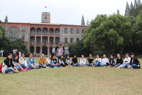 上午九点钟,学习部部长高祺琪带领一行21个人到达苏大本部。面对本部美丽的风景,大家都迫不及待地拍起了照。随后,高祺琪同学向大家介绍了承载苏大百年历史的文星阁和著名的怡远楼与博远楼。随后,同学们来到了苏大的标志性建筑――钟楼前,还看到了厚重的数学楼。大家惊喜地拍照,赞叹它们的雄浑与大气。之后,同学们在钟楼前面的绿茵草坪上开心地合影留念。
