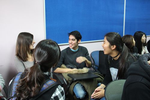 在活动开始前,主持人首先介绍到,国交之所以举办这样的一系列见面会,是希望大家能放开心扉交流,找到自己的语言伴侣,在交流中互相帮助互相学习,增进双方的外语水平。
