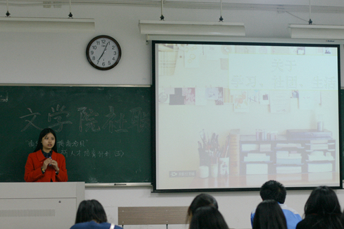 11月2日晚上七点,文学院社联在文综楼2206教室举办了第五次培训会。此次培训会主要由13级师范班的俞颖艳同学为社联干事们讲了“大学生如何处理学习、社团、生活”的问题。