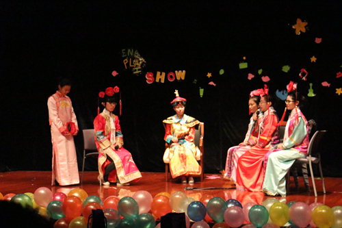 还在感动于甄�与沈眉庄的真挚情谊时,2班同学的短剧《老友记》再一次以轻松幽默的剧情诠释了友情的内涵。他们用充满激情的舞蹈,透着青春气息的表演博得了观众热烈的掌声,让我们领略了美国年轻人的生活状态。紧接着是4班同学的歌曲《至少还有你》。田雪晴同学甜美动人的嗓音刚一出口,现场便掌声雷动、尖叫连连。