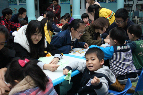 在活动现场,不时会有孩子们欢悦的笑声奏响起旋律轻快的童声交响乐,当现场被孩子的笑声萦绕,志愿者们便也在幸福中徜徉。在听到咿呀学语的孩子口中说出“姐姐”时,一个名叫许颖的志愿者表示:“来参加这次活动使我爱上了这里的孩子,这次活动于我而言有着重要意义,让我明白不仅仅自己在播撒爱,来自孩子的那份单纯良善的爱也给我带来了感动。”此外,还有一个年龄稍长的孩子,在欢笑声中,只有他紧锁眉头在认真拼图,有时也会因遇到困难而不耐烦。每到这时,旁边的志愿者便会予以鼓励,并加以引导,帮助其最终完成拼图游戏。当看到自己拼好的“米老鼠”呈现于面前,他依旧会洋溢着孩童般阳光似的绚丽的笑容。