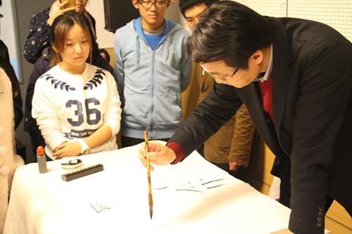 最后,冷建国老师亲自执笔,为同学们演示“永字八法”,一笔一划无不透射出纯熟的书法技巧,在场的同学们都陶醉在浓厚的书法氛围中,无不啧啧称叹。讲座在笔尖墨香中落下了帷幕,同学们都显得意犹未尽。书法玄妙之意,出于物类之表,幽深之理,伏于杳冥之间,岂常情之所能言,世智之所能测。相信同学们通过对书法的学习与探寻,自能领悟其中的深意。
