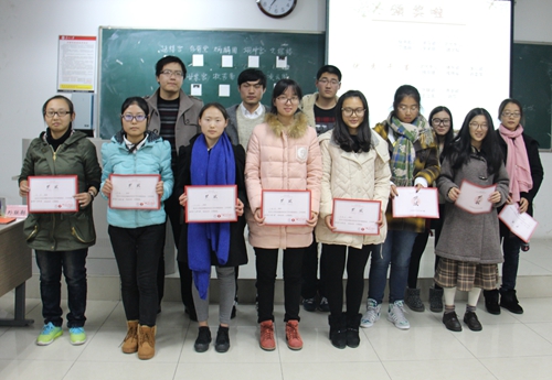 在五个部门述职结束之后,主持人田雪晴同学公布了学生会本学期的第一批优秀干事的名单,并由主席团成员为他们颁发奖状,一张张奖状正是干事们在部门工作当中辛苦付出的证明与回报。其后,大会进入了第一个游戏环节“大家请抱拳”,现场的氛围立即变得活泼起来。