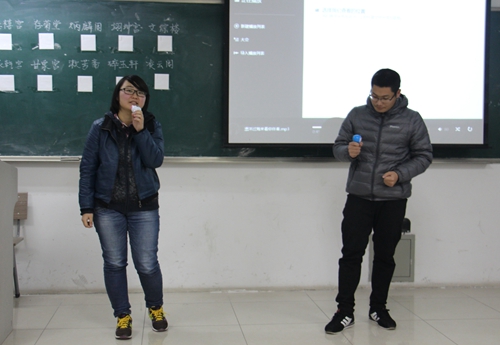 第二个游戏环节“就不听指挥”的到来为大会带来了又一个高潮。伴随着火热的游戏气氛,衣俊达和于恬睿两位同学带来的的温情合唱《漂洋过海来看你》赢得了全场的掌声和欢呼。