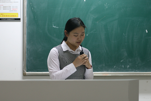 第一位上台与大家分享自己观点的是13级的胡佩云同学,她关注的热点问题是崔永元转基因网络骂战事件。胡佩云同学首先向大家科普了一些小知识,如转基因食品的定义、各界对转基因的态度等等,她还以一场美国两所知名高校之间关于转基因的辩论为例,让大家了解到现在关于转基因食品的争论之大之多,接下来,她以时间轴的展示方式,向大家清楚地揭示了崔永元与社会各界人士尤其是农大师生之间由于观点不同而引发网络疯狂骂战事件的来龙去脉,在了解了事件始末之后,大家对于转基因及转基因食品有了更深层次的了解。同时,胡佩云同学指出的公知道德问题也引发了大家的热烈讨论。