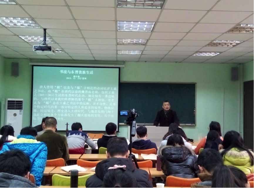 2015年12月15日下午15:00,由苏州大学文学院研究生会主办的中国传统文化系列活动的第一站在本部第四教室C教室拉开了帷幕。本次活动邀请到了广州美术学院中国画学院副院长、教授,书法系主任,中国书法家协会理事,中国著名“王学”专家祁小春教授,在苏州大学为同学们带来了一场题为“书法与东晋贵族生活”的专题讲座。本次讲座由苏州大学中国传统文化工作坊、文学院中国传统文化传承协会、文学院研究生分会共同举办。