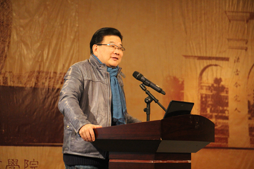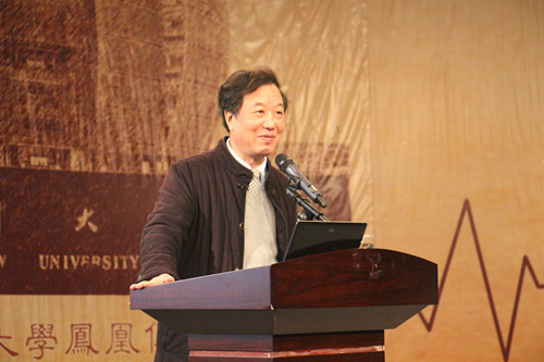 在讲座开始前,文学院院长王尧首先发表了讲话。王院长表达了对曹可凡老师及其所主持的电视节目、所著的书籍的喜爱之情,还特别提到了曹可凡老师主持的《诗与画》,并夸赞曹老师为“中国独一无二的主持人”。在提及请曹老师来担任此次讲座的主讲人的原因时,王院长谈到了曹老师的作家身份及其在写作方面的成就,并以曹老师的新作《蠡园惊梦》为例肯定了其深厚的文学素养和文化底蕴。