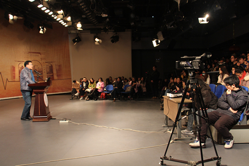 在此次讲座的最后阶段,在场的同学们向曹老师积极提问,并得到了曹老师耐心的解答。文学院办公室主任黄晓辉老师代表凤凰传媒学院播音与主持艺术专业的同学们向曹老师请教一名主持人所当具备的素质,而曹老师的回答亦是耐人深思。曹老师认为,一名主持人所当具备的最重要的素质就是自身修养。只有不断提高自身修养,成为一名优秀的主持人才能够拥有根基。同时,主持人要善于表达,会说有意义的话,这样才能够让别人听懂自己所要表达的意思。