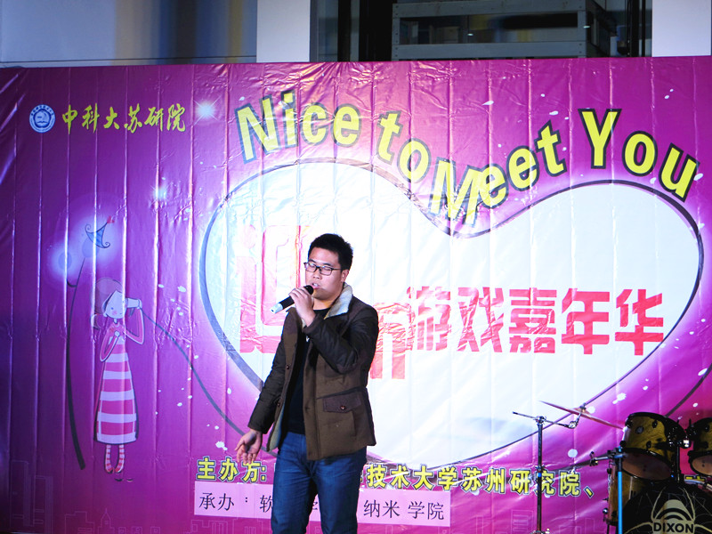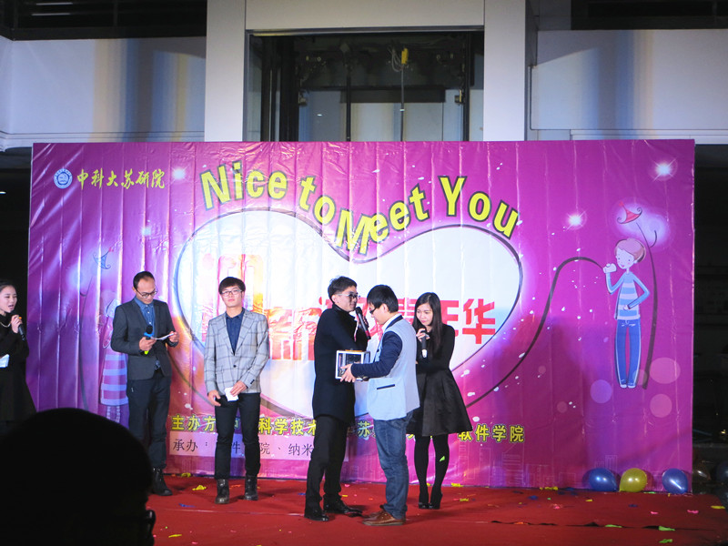 2015年12月26日晚18:45,中科大(西区)思贤楼大厅举办了“Nice to Meet You”迎新嘉年华。此次活动由中国科学技术大学苏州研究院主办,四川大学苏州研究院、东南大学苏州研究院、苏州大学文学院研究生分会等联合协办。中科大苏研院的师生以及独墅湖高教区其他高校的研究生参加了此次晚会。我院部分研究生也参加了当晚嘉年华。独墅湖畔高校林立,是莘莘学子携手并进、共同探讨学术、开拓人生的梦想启航点;而同在独墅湖畔学习生活的来自各校的学生们,也自然有着一份不可割舍的缘分和友谊。值此辞旧迎新之际,这次嘉年华活动拉近了各校学生们的距离,加深了我们的友谊。
